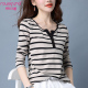 2016秋冬装新款打底衫女长袖纯棉修身V领上衣丅显瘦体恤条纹T恤女