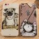 iphone6s苹果7plus手机壳个性创意浮雕防摔萌猫狗巴哥八哥犬挂绳
