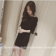 2017春装新款女装一字肩春秋款连衣裙长袖针织百搭打底裙子包臀裙
