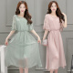 新款女装雪纺圆领松紧腰套头常规单件大摆型2016年夏季短袖长