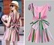 欧洲站2016女装新款夏装小香风连衣裙条纹修身蝴蝶结公主蓬蓬裙潮