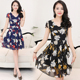 2017夏季新款中老年女装韩版大码短袖圆领气质印花雪纺妈妈连衣裙