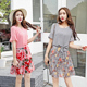 2017新款夏装女士雪纺短袖连衣裙两件套夏季碎花短裙夏天时尚套装