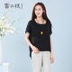 雪丹枝2017夏季新款螺纹纯色插肩短袖衬衫拼接前端后长t恤大码女