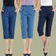 夏季薄款中年女士九分裤 高腰大码显瘦小脚牛仔短裤 妈妈装牛仔裤