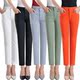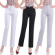 夏季薄款中老年女士休闲裤弹力打底裤直筒白色九分裤高腰妈妈裤子