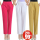 夏季薄款中老年九分裤棉质高腰休闲裤弹力显瘦直筒裤白色妈妈裤子