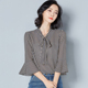 雪纺条纹衬衫女韩范 宽松喇叭袖上衣 显瘦百搭气质系带蝴蝶结衬衣