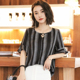 条纹t恤女 短袖夏装遮肉荷叶边小衫宽松大码藏肉上衣潮25-29周岁