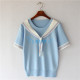 夏天新款韩版小清新短袖套头女薄款上衣蓝色钉珠冰丝针织衫女短款