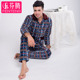 芬腾2016新款男士春秋薄款棉质睡衣套装长袖休闲格子家居服