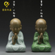 陶瓷小僧摆件 汝窑小和尚沙弥功夫小子桌面装饰小摆设工艺品送礼