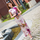 2017新款春夏装中袖双层真丝旗袍改良复古宴会短款修身妈妈旗袍裙