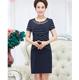 17新款韩版修身中长款假两件短袖连衣裙40-50岁妈妈夏装中年裙子