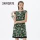 Kaiser/凯撒专柜同款 夏季新品 绿色定位印花拼接短袖连衣裙