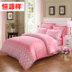 恒源祥家纺 婚庆四件套结婚床上用品粉色贡缎提花绣花床单四件套