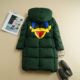 米可贝拉新款冬装中大童女童连帽长款皮纹卡通加厚保暖棉衣棉袄