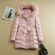 新款冬装中大童女童装连帽脱卸帽檐中长款毛毛球淑女棉衣