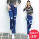 2016新款春秋韩版膝盖破洞九分高腰弹力牛仔裤女显瘦铅笔小脚裤女