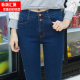 春季新款韩版弹力紧身高腰牛仔裤女长裤排扣修身显瘦小脚铅笔裤