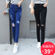 春秋新款2016潮修身显瘦高腰黑色牛仔裤子女弹力小脚铅笔九分长裤