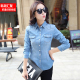 春秋新款韩版修身纯棉牛仔衬衫女长袖薄外套韩国百搭打底衬衫上衣