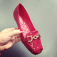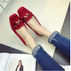 香港代购绒面平跟流苏吊坠红色大码豆豆鞋方头平底鞋套脚单鞋女鞋