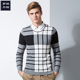 罗缔丹特2016秋季新款假两件毛衣男衬衫领修身英伦格子青年针织衫