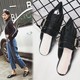 2017时尚韩版新款百搭真皮女鞋子平底鞋尖头拖鞋牛漆花皮凉鞋包邮