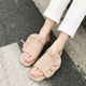 2017夏季新款凉鞋女鱼嘴一字松紧带平底防滑舒适荷叶边休闲凉拖鞋