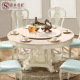 诗木名匠 欧式实木圆桌大户型餐桌象牙白描银大理石桌1.3/1.5/1.8