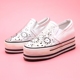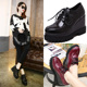 2017春高跟鞋漆皮坡跟系带休闲女单鞋圆头厚底防水台松糕鞋英伦潮
