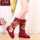 2016秋季新款女鞋长筒靴 老北京布鞋女靴子内增高坡跟民族风绣花