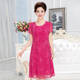 新款连衣裙中老年女装修身显瘦气质妈妈装蕾丝短袖雪纺裙子夏季