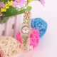 韩国时尚潮流学生小清新女式手链表韩版水钻时装表红绿宝石项链表