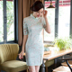 2017春秋新款旗袍连衣裙绣花大码修身中袖盘扣中长款淡蓝色旗袍女