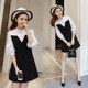 2017春夏新款韩版气质显瘦七分袖双排扣a字裙子拼接假两件连衣裙