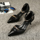 2017春夏欧洲站新款女鞋尖头金属字母一字扣细跟高跟真皮女凉鞋潮