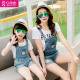 亲子装母女装夏装2016新款潮韩版牛仔背带裤短裤女童短袖t恤套装