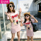 亲子装夏装母女装2017新款连衣裙韩版夏季母女裙卡通短袖休闲裙子