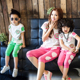 亲子装夏装2017纯棉中长款t恤打底裤公主装裙韩版母女童装2件套装