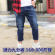 胖子弹力牛仔裤男加肥加大码九分裤春夏季肥仔青年大号小脚直筒裤