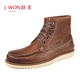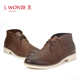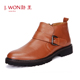劲王jwon冬季男靴子真皮短筒圆头工装靴男英伦搭扣靴时尚套脚男鞋