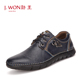 劲王新款商务休闲鞋 低帮头层牛皮系带边线潮流男鞋劲王 6513585