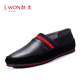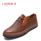 劲王2015新款正品韩版牛皮皮鞋秋冬系带圆头软面皮低帮鞋男豆豆鞋