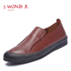 劲王春季新款男士皮鞋头层牛皮真皮皮鞋平跟男鞋懒人鞋子6422630