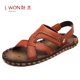 劲王2015夏季男士凉鞋真皮沙滩鞋男透气休闲牛皮凉鞋新款凉拖男鞋