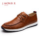 劲王.牛皮橡胶豆豆鞋日常套脚低帮鞋夏季软面皮轻质圆头流行男鞋