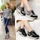 新款高帮短靴女鞋隐形内增高休闲系带百搭韩版运动厚底圆头松糕