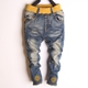 春秋款儿童小脚裤男童单裤牛仔裤中童女童腰带韩版个性长裤送腰带